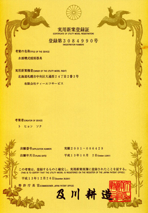 ㆍ제 목 실용신안등록증 3084990(일본)